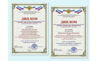 В декабре 2024 года в г. Кирове проводился II Международный конкурс научных, методических, творческих работ «Знание, Инновации, Приоритеты». Его целью являлась активизация и интеграция ведомственных и общественных ресурсов для устойчивого развития общества, науки и образования.