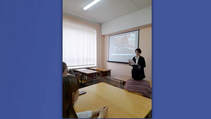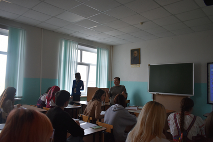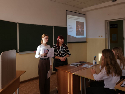 Заведующая кафедрой педагогики и психологии О.В. Карина и доцент кафедры дошкольного и начального образования Е.В. Попова встретились со старшеклассниками МБОУ № 1 им. Героя Советского Союза П.И. Чиркина г. Калининска.