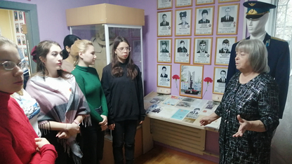 В рамках военно-патриотического и духовно-нравственного воспитания студенты филологического факультета под руководством помощника декана факультета Ю.С. Камардиной посетили обзорную экскурсию филиала краеведческого музея г.Балашова - «Музея боевой славы». Экскурсию провела руководитель региональной общественной организации «Память о защитниках Отечества» О.И. Морозова.