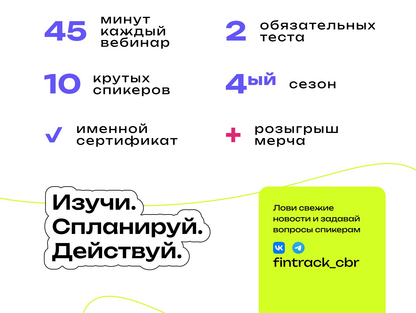 В новом сезоне участников ждут 5 вебинаров с представителями Банка России и экспертами финансового рынка. «Финтрек» — это уникальная возможность узнать из первых уст, почему возникает инфляция, что такое генеративный искусственный интеллект, кто такие дропы и что делать человеку, которого вовлекли в дропперство. Расскажут и о том, с чего начать карьерный путь и как прийти к успеху. Темы выбирались с учетом обратной связи от участников прошлого сезона «Финтрека».