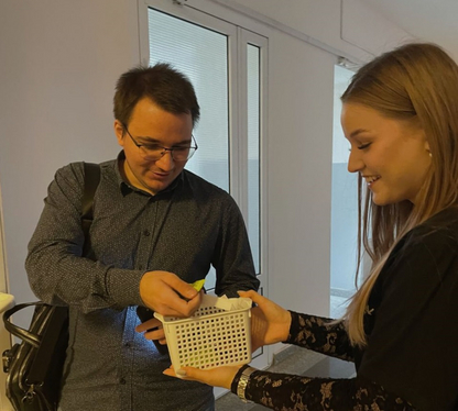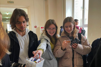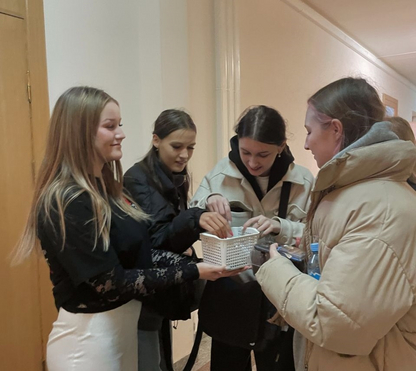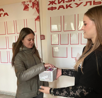 Ребята поднимали настроение, раздавая сладости с приятными пожеланиями.