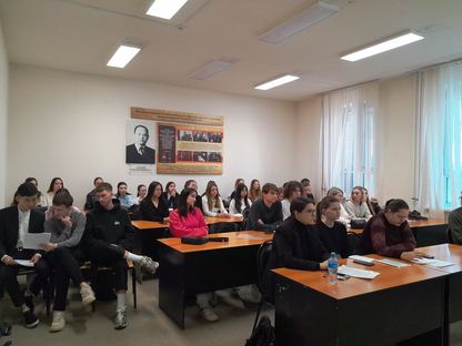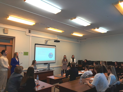 31.03.2025 г. в рамках " Марафона профессионального развития" на экономическом факультета состоялась встреча студентов 3 курса направления "Экономика" с представителями компании «ДВК ГРУПП- финанс», которая развивается в сфере предоставления услуг по тендерному, финансовому и юридическому сопровождению бизнеса. На сегодняшний день партнёрами компании являются ОАО РЖД, ПАО Транснефть, ПАО Роснефть, ПАО Газпром и другие крупные заказчики. На встрече была показа презентация компании, и студенты задавали волнующие их вопросы по возможностям прохождения технологической практики и будущего трудоустройства.