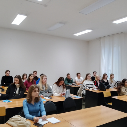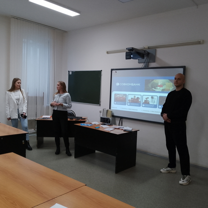 3 декабря студенты экономического факультета проводили мероприятия приуроченные к празднованию Дня банковского работника. В этот день состоялась встреча представителей Совкомбанка со студентами 3 курса дневного отделения экономического факультета по направлению подготовки Экономика, профиль финансы и кредит.