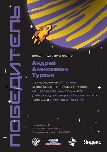 13 июня были подведены итоги VII сезона всероссийской олимпиады «Я – профессионал». Олимпиада является одним из проектов Президентской платформы АНО «Россия – страна возможностей», реализуемый при поддержке Министерства науки и высшего образования РФ. Почти 200 тысяч участников со всей России, чуть более 17 тысяч финалистов и только 3872 дипломанта.