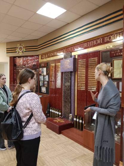 В рамках цикла мероприятий, посвященных 115-летию СГУ, студенты 1 курса юридического факультета и факультета психологии СГУ, изучающие немецкий язык на кафедре немецкого языка и межкультурной коммуникации, посетили экскурсию в Музее истории университета.
