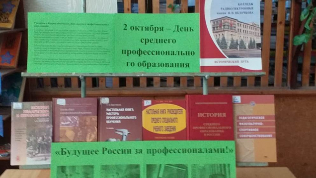 К мероприятию в библиотеке КРЭ открыта книжно - иллюстративная выставка, на которой представлены книги об истории среднего профессионального образования в России и истории Колледжа радиоэлектроники имени П.Н. Яблочкова.