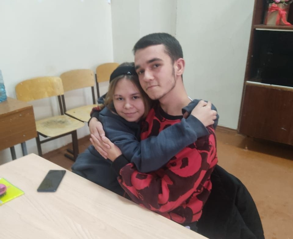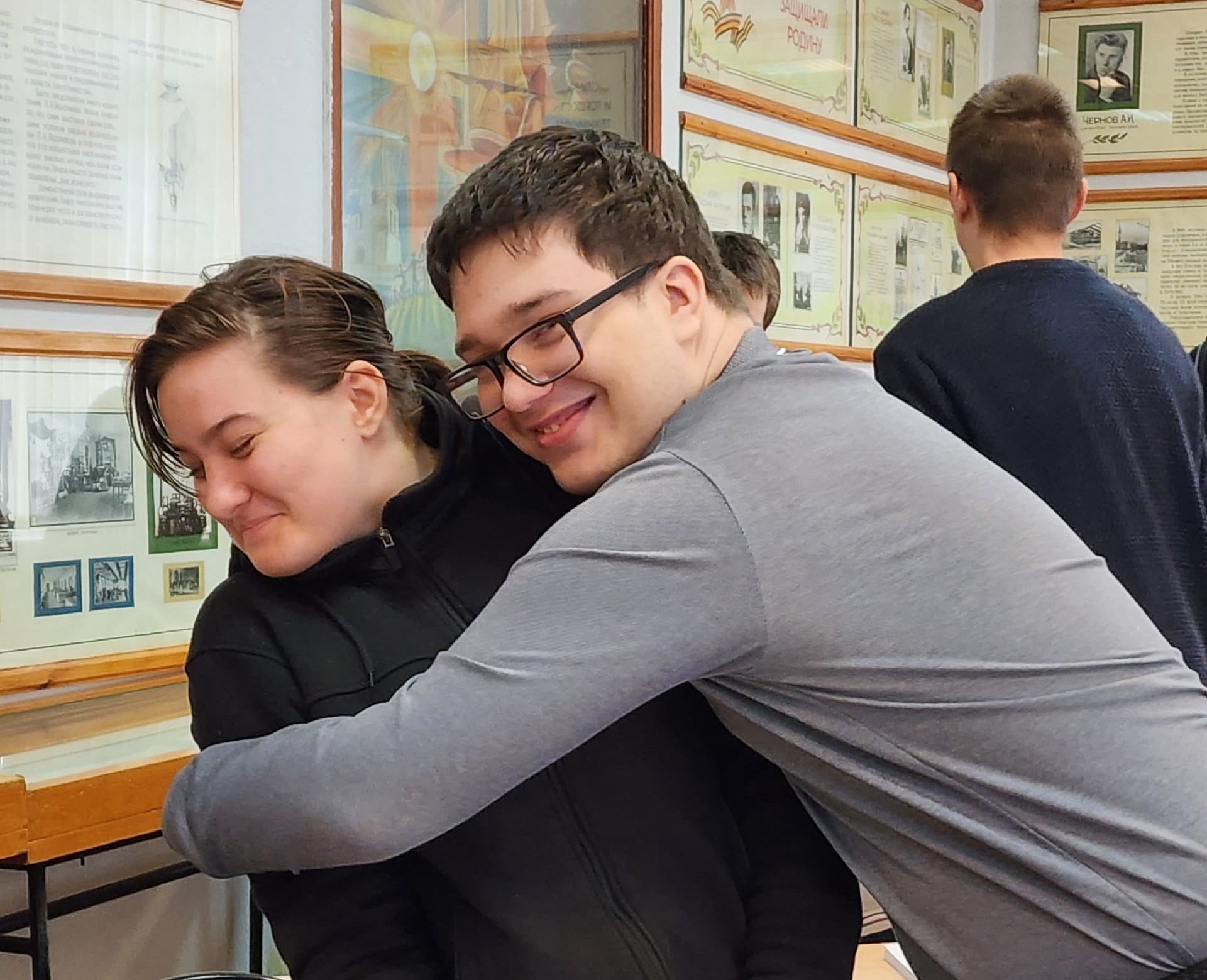 Студентам было предложено оглядеться вокруг, улыбнуться и со словами поддержки "Я рядом! Я с тобой!" обнять своего одногруппника или одногруппницу.