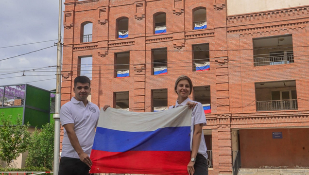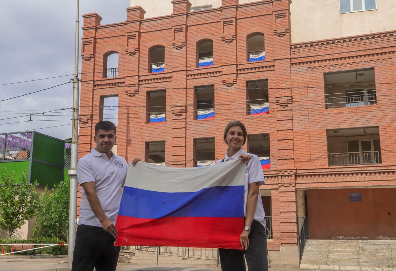 21 августа в преддверии Дня Государственного флага активисты патриотического клуба "Я Горжусь СГУ" приняли участие в украшении фасада и балконов общежития №1 триколором.