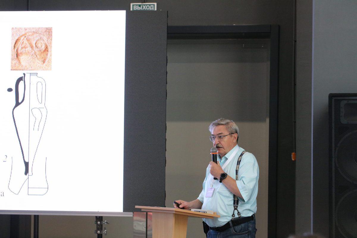Доклад заместителя директора Института археологии и культурного наследия Н.Б. Чурековой был посвящён одной из специфических категорий меток – монограммам и лигатурам. Они встречаются на тарных амфорах в виде граффити и дипинти. В докладе Наталья Борисовна рассмотрела виды монограмм и лигатур, статистику их присутствия на амфорах и случаи встречаемости монограмм и лигатур с другими отметками на тарной керамике.