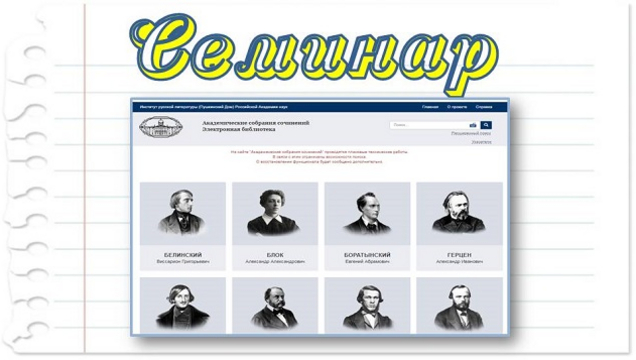 Дополнением к журнально-книжному обзору стало знакомство с электронными ресурсами, к которым можно обратиться в поиске текстов, литературоведческих публикаций и комментариев, которые облегчают и расширяют понимание литературных произведений. Так, например, издания серии «Академические собрания сочинений Пушкинского Дома» являются эталонным типом филологического издания. Его отличительные особенности – полнота и точность представления всего литературного, критического, публицистического, служебного и эпистолярного наследия писателя; учёт всех рукописных и печатных источников текста, исчерпывающий научно-справочный аппарат.