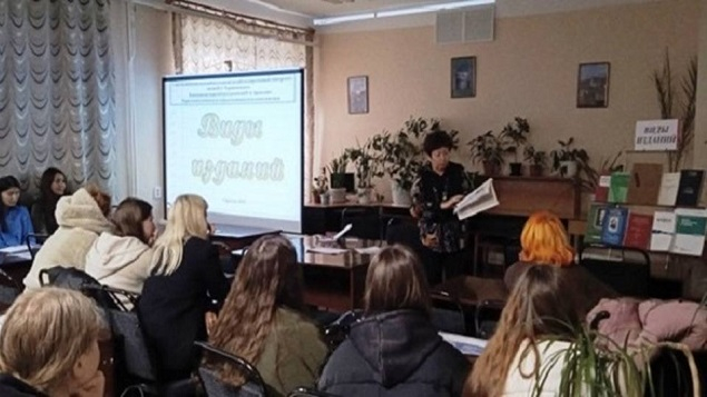 По просьбе доцента кафедры русской филологии на базе МОУ «ГЭЛ» Ларисы Владимировны Зиминой отраслевой учебный отдел общественных и педагогических наук ЗНБ СГУ принял участие в учебном занятии по предмету «Методика обучения литературе».