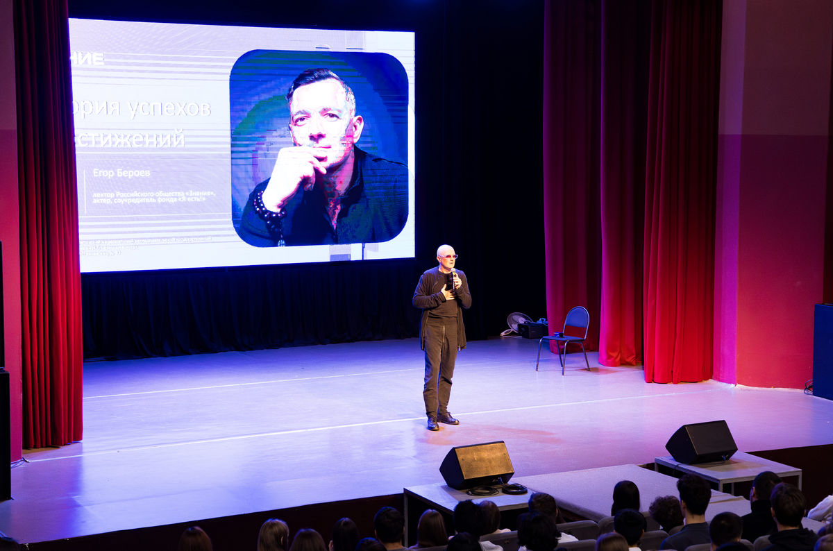 «Сегодня актер и лектор Егор Бероев поделился со студентами особенностями творческой профессии, рассказал о своём пути и планах, а также о деятельности фонда “Я здесь”. Такие встречи невероятно важны для нашей молодёжи. Они расширяют кругозор, мотивируют и вдохновляют на новое», – считает проректор по молодёжной политике и воспитательной работе А.В. Головченко.