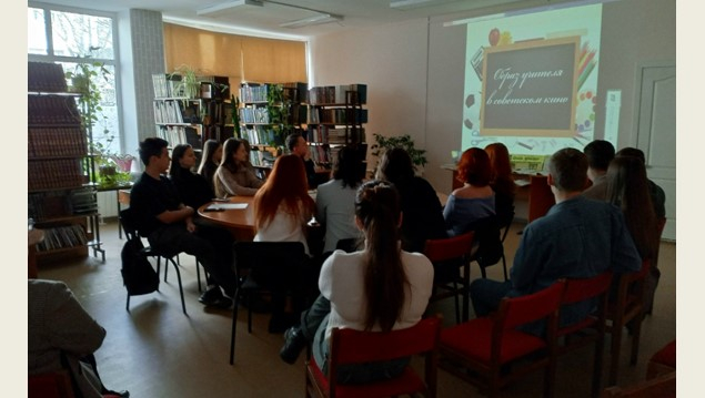 Старшекурсники факультета гуманитарных дисциплин, русского и иностранных языков зарядились положительной школьной атмосферой, посмотрев фрагменты фильмов о советской школе и учителях. Студенты уже побывали на практике в школах Саратова, и скоро многие из них переступят порог учебного заведения как профессиональные учителя.
