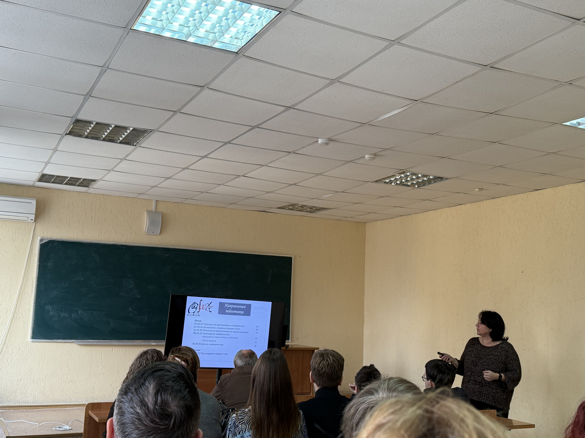 Затем выступила заместитель декана по социальной и воспитательной работе Сецинская Елена Владимировна. Она подробно рассказала о направлениях подготовки, проходных баллах прошлых лет и предметах ЕГЭ, которые необходимо сдавать для поступления на мехмат. Также Елена Владимировна рассказала о дополнительных квалификациях, которые можно получить, обучаясь на мехмате. В завершение выступления Елены Владимировны абитуриенты узнали о стипендиях, которые возможно получать при обучении на мехмате.