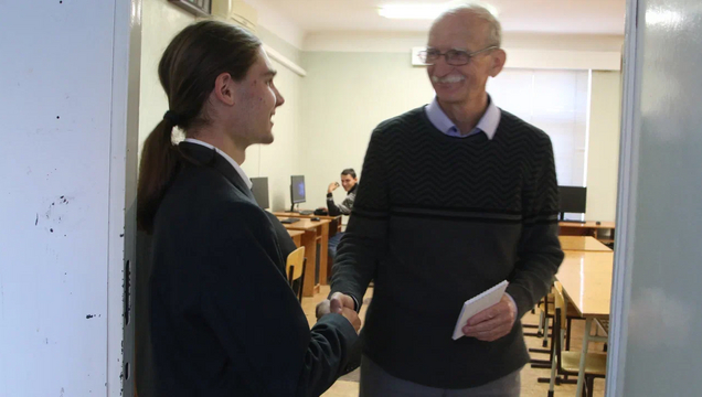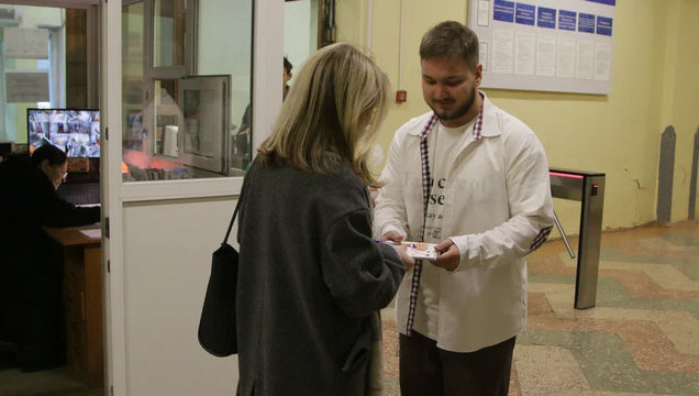 03.10.2025 активисты студсовета в парадной форме встречали преподавателей с подарками, улыбками, пожеланиями и приглашали прийти в фойе второго этажа на большой перемене для участие, где студклубовцы вручат свой творческий подарок