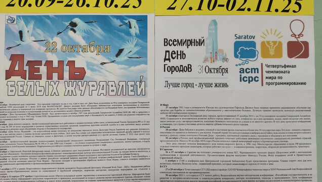 Из еженедельных выпусков все узнали, что есть Всемирный День городов и Всемирный день хлеба, когда отмечается день бабушек и дедушек, в каком году были учреждены медали «За отвагу» и «За боевые заслуги», что в Саратове прошёл 28й Саратовский марафон, проводятся различные концерты, выставки и другие мероприятия.