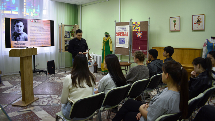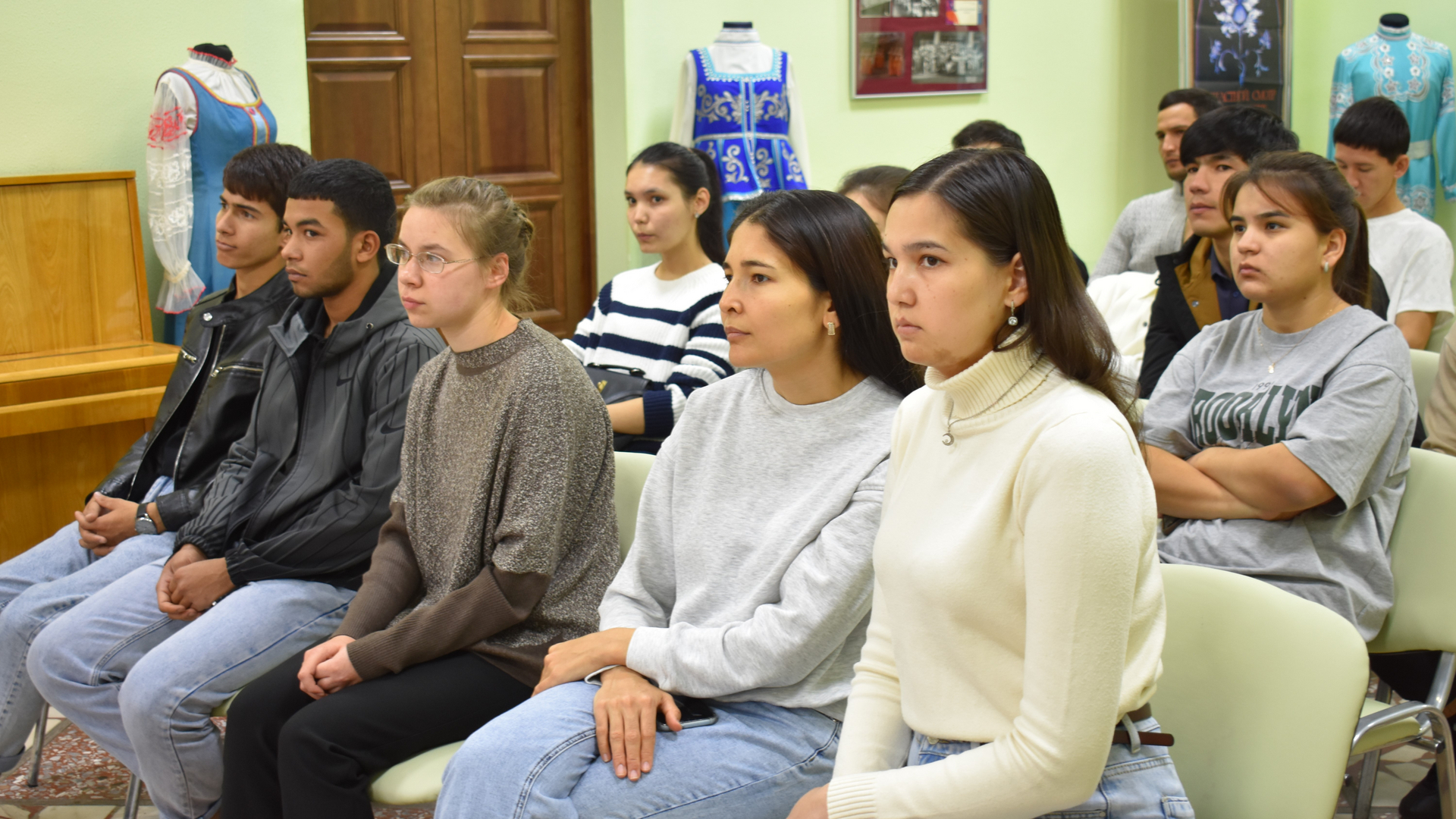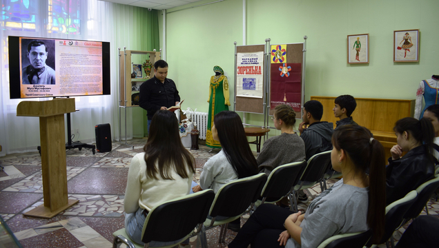Куратор доцент Е.И. Алиференко и студент Тойлы Бегмырадов дополнили рассказ сотрудника музея информацией о поэтической и подпольной деятельности Мусы Мустафовича Джалиля в сложнейших условиях немецкого плена славного представителя татарского народа.
