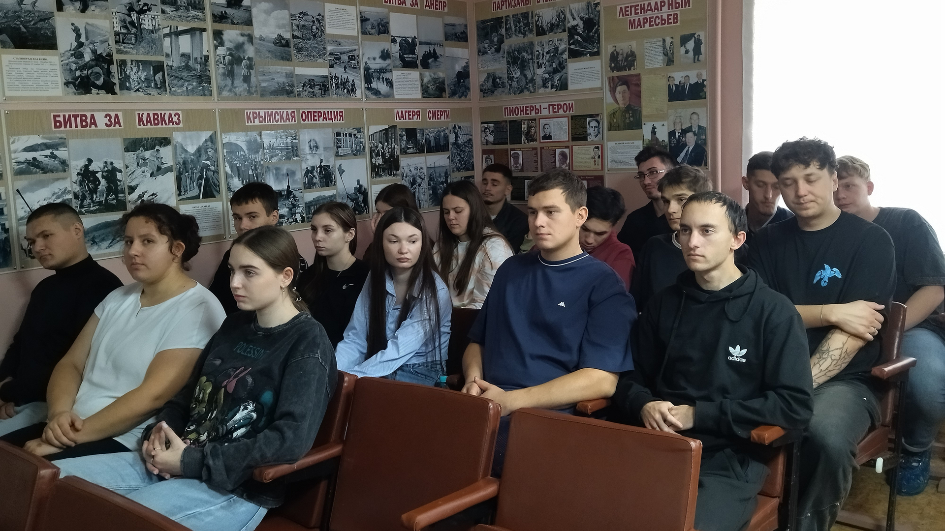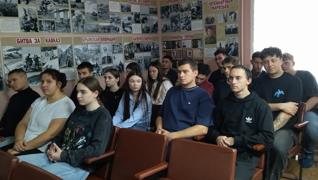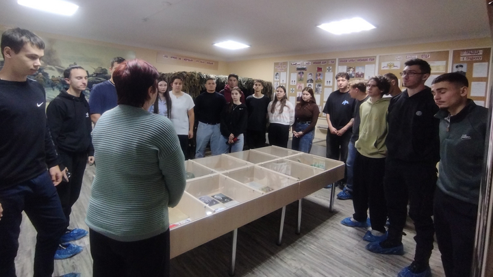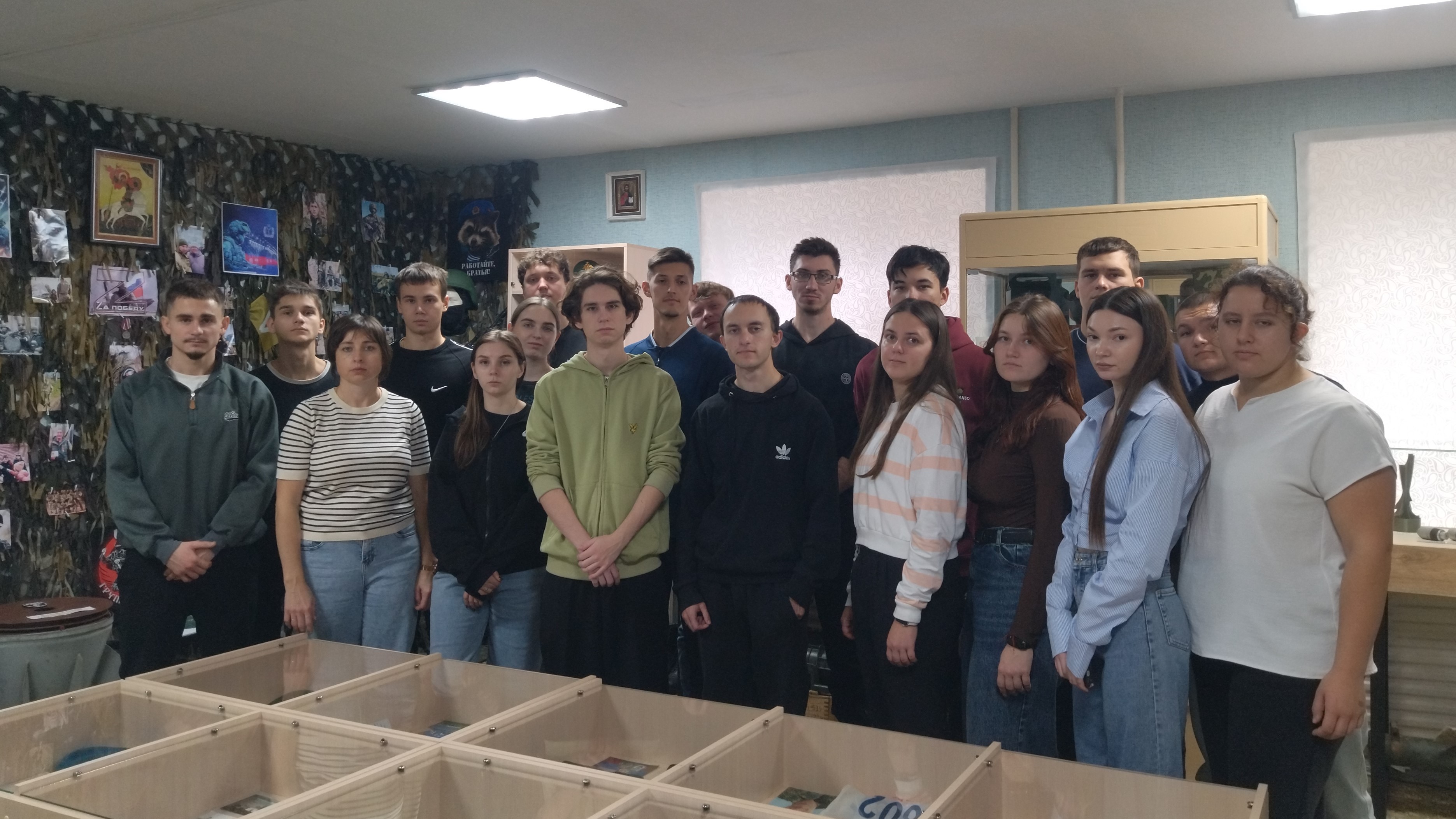 Для некоторых студентов это был первый визит в музей, поэтому они активно задавали вопросы экскурсоводу. Особенный интерес у юношей вызвали представленные образцы оружия и коллекция моделей самолётов времен Великой Отечественной войны.
