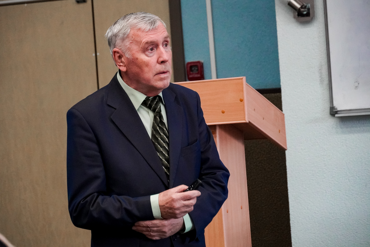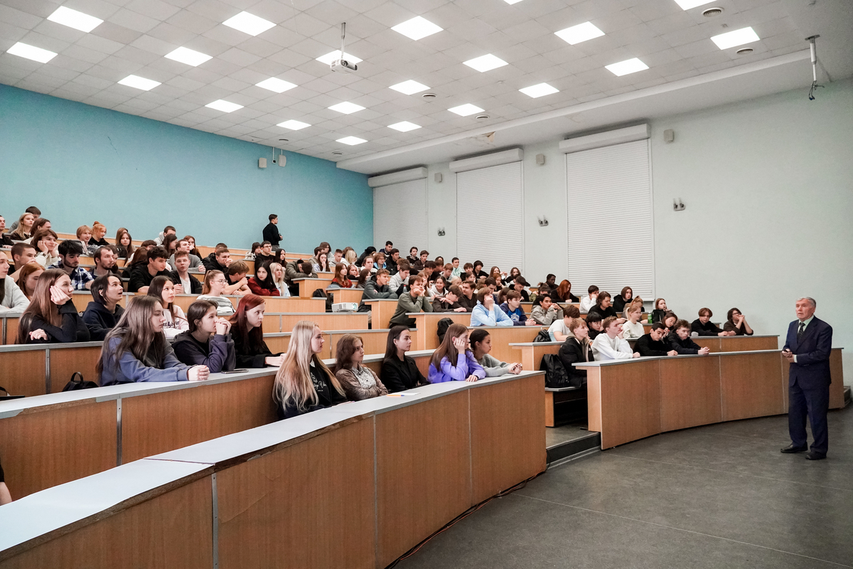 Особое внимание лектор уделил личности Владимира Дмитриевича Зёрнова – первого заведующего кафедрой физики, который не только стоял у истоков университета, но и был его ректором в сложнейшие 1918-1921 годы. «Именно Зёрнов, будучи учеником выдающегося русского физика, профессора Московского университете Петра Николаевича Лебедева, пользуясь его рекомендациями, сумел обеспечить высокий уровень подготовки математиков и физиков в университете, скомплектовав профессорский состав факультета, обеспечив лаборатории физическими приборами и сформировав библиотеку учебной литературы», – подчеркнул Валерий Михайлович.