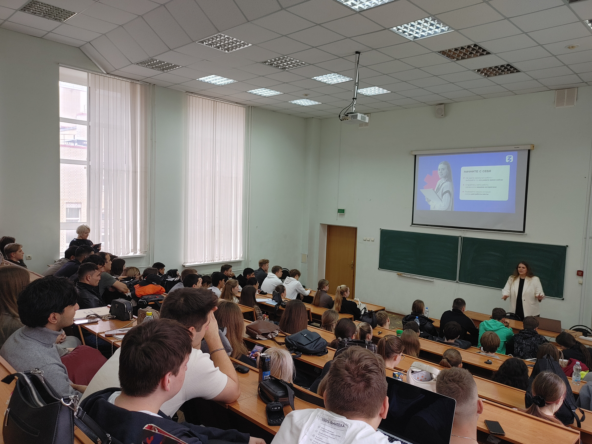 Вместе со слушателями Диана Мусаева обсудила этапы поиска работы и построения карьеры, профессии и навыки будущего, важность креативного мышления и других гибких навыков. Лектор также рассказала о выборе отрасли, о типах компании, о составлении резюме и прохождении собеседований. В том числе во время лекции эксперт затронула тему привлечения молодежи в научную деятельность РФ.