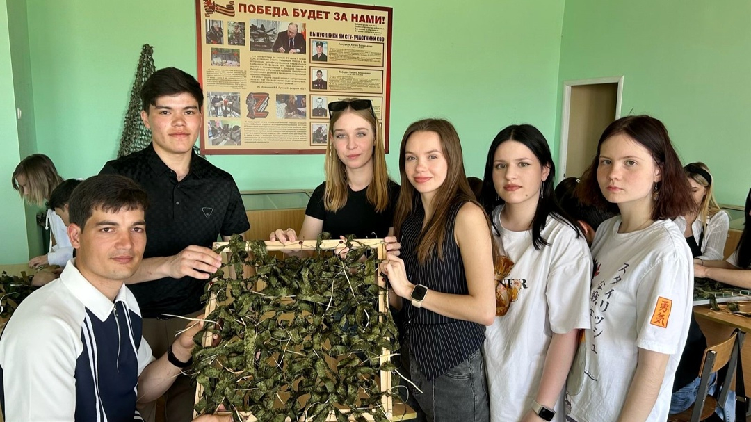 Эта инициатива продолжается и сегодня – студенты, преподаватели и сотрудники активно участвуют в изготовлении маскировочных сетей. Они предназначены для укрытия и защиты военнослужащих, техники, вооружения и других объектов. Эта работа требует не только времени и усилий, но и особого внимания к деталям, ведь от качества маскировки зависят жизни наших бойцов.