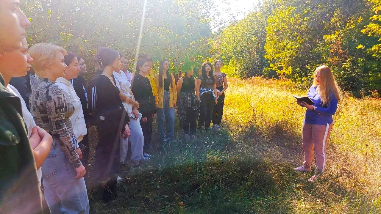 Экскурсию в лес студенты 221 группы филологического факультета посвятили творчеству И.А. Бунина. Автор, чье рождение приходится на осень, создал целый ряд ее прозаических и поэтических образов. Студентам было предложено вспомнить произведения данной тематической направленности.