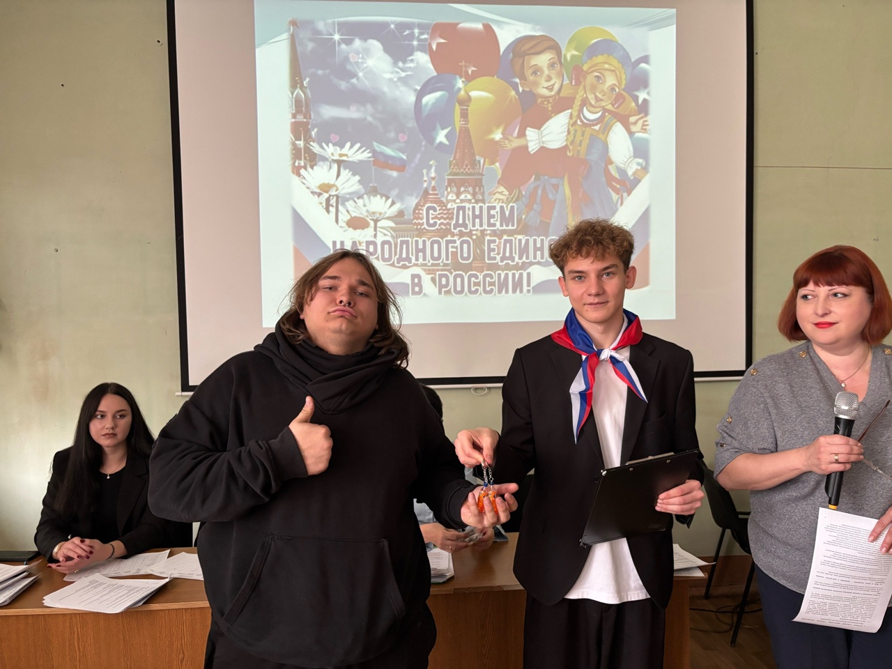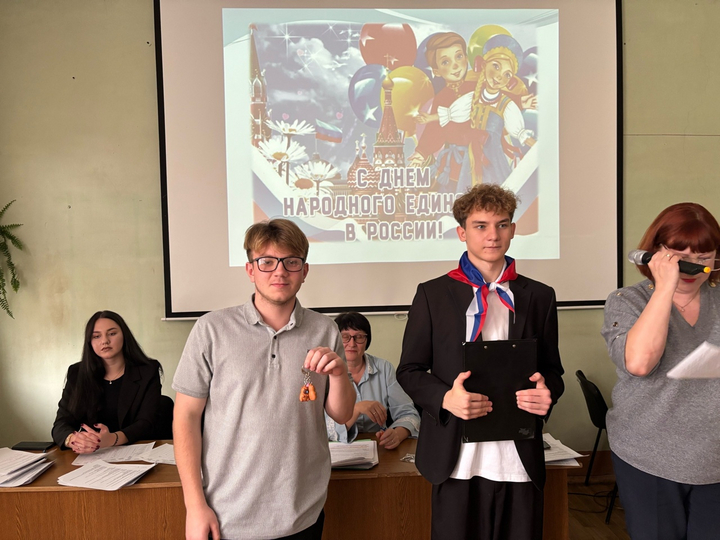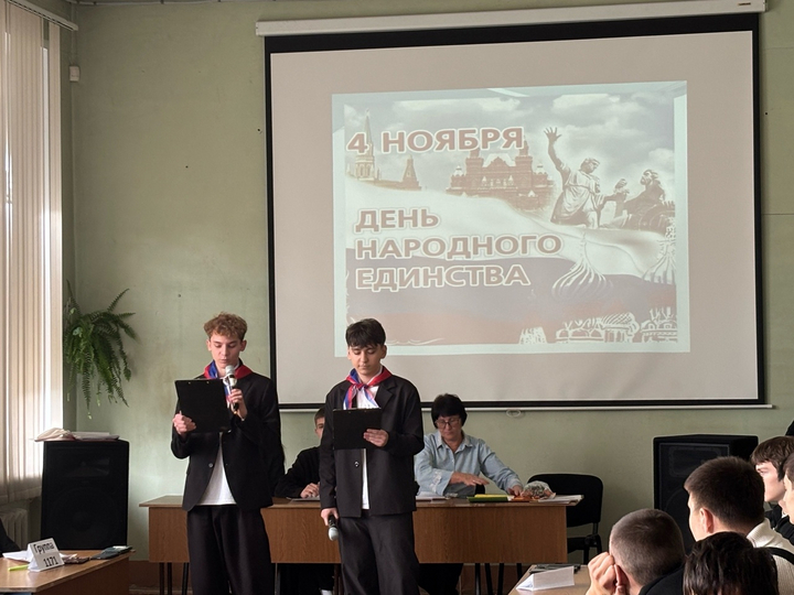 31.10.2025 г. прошло торжественное заседание старост академических групп 1-3 курса. Главный староста студенческого совета Кунракова Самира (студентка гр. 1271), подготовила доклад - презентацию «История праздника 4 ноября - День народного единства».