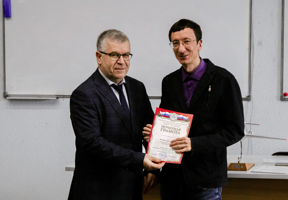 Грамотами ректора СГУ были награждены директор компании «Neoflex» Р.Б. Родионов и директор креативного кластера «Дизайн центр» Д.Б. Козюкин.
