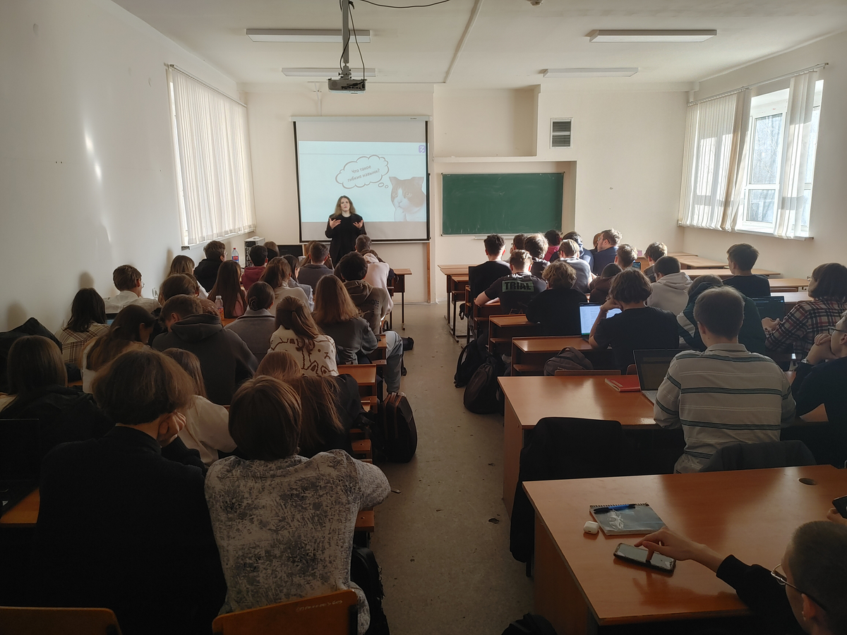 🔹Слушателями стали 70 студентов 1 и 3 курсов обучения. В рамках лекций обсудили глобальные и российские тренды рынка труда, необходимость развития гибких навыков в эпоху цифровизации и технологического роста, а также провели несколько упражнений на развитие креативного мышления.