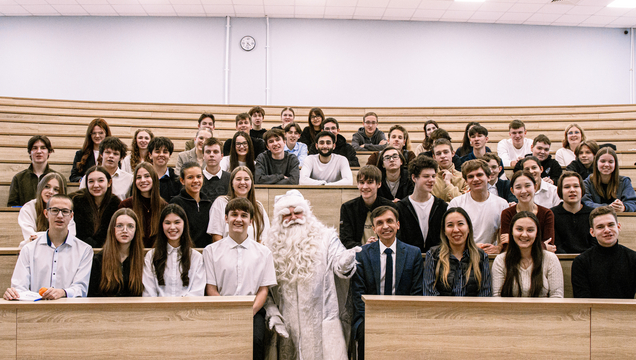 На площадке Института физики состоялось заключительное в уходящем году занятие Школы технологического лидерства для старшеклассников. Программа объединила серьёзную научную составляющую и праздничную предновогоднюю атмосферу.