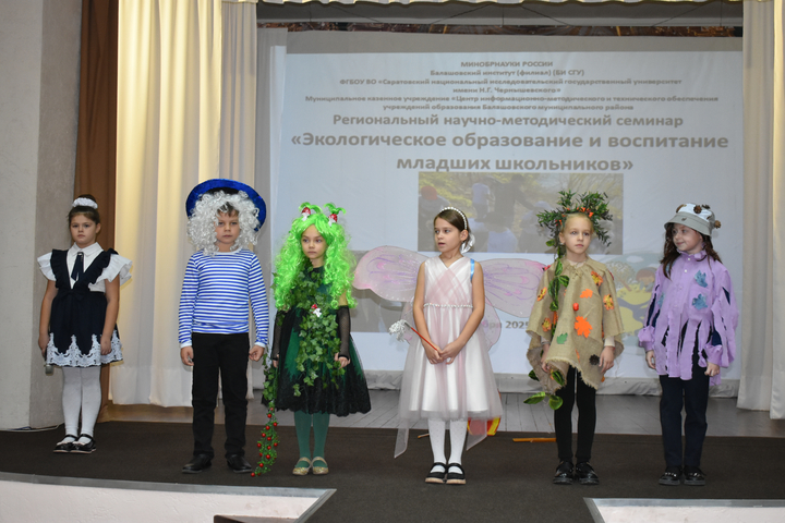 На пленарном заседании были представлены различные формы экологического воспитания и обучения младших школьников. Так, учителя и ученики начальных классов МАОУ СОШ № 9 имени П. А. Столыпина г. Балашова Г.В. Анохина, Л.А. Башкирова, А.В. Малюгина и музыкальный руководитель ГУДО Детская школа искусств № 2 г. Балашова О.В. Павликова показали экологическую сказку «Давайте будем беречь планету!».