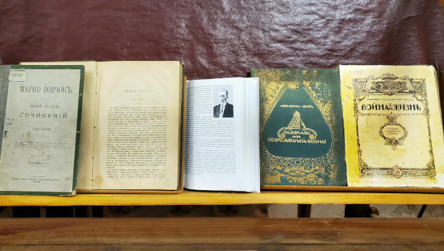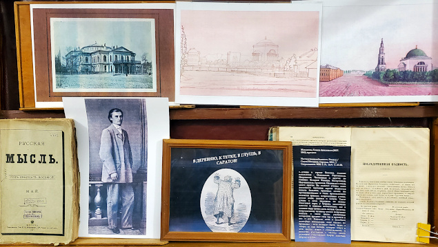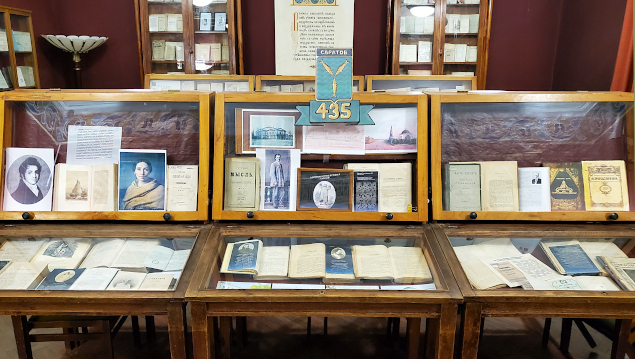 Среди саратовских литераторов XIX – начала XX вв. было немало известных имён переводчиков, поэтов, прозаиков. В экспозиции представлены сочинения лиц, чья жизнь была связана с Саратовом и Саратовским краем. Эти авторы были активными участниками литературного процесса XIX в. Марию Семеновну Жукову В. Г. Белинский называл «русской Жорж Санд». Дочь саратовского губернатора А. М. Фадеева творила под псевдонимом «Зинаида Р-ва». А. К. Жуковский, будучи однофамильцем знаменитого поэта, подписывался: «Е. Бернет». Произведения С. А. Макашина, М. А. Воронова, И. А. Салова, Н. И. Мердер (псевд. Н. Северин), О. Руновой, А. К. Гольдебаева печатались в известных журналах, таких, как «Современник», «Отечественные записки», «Русская мысль». В журнале «Русское богатство» вышла повесть А. О. Немировского, посвящённая холерной эпидемии в Саратове. Как правило, Саратов изображался большинством авторов под вымышленными топонимами. Чтение этих произведений подобно ребусу, так сюжеты романов и повестей разворачиваются в старом Саратове, который так сильно изменился за минувшее время. Разнообразны по своей тематике поэтические сборники. Начало XX в. ознаменовано такими событиями, как революция 1905 г., Первая мировая война. Они также нашли отражение в произведениях писателей-саратовцев.