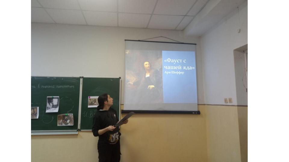 Выступления обучающихся позволили проследить динамику рецепции характера данного персонажа в литературных произведениях различных исторических эпох (XVI-XX вв.): в немецкой «Народной книге» (Д. Коннова, В. Елисеева), в пьесе К. Марло «Трагическая история доктора Фауста» (С. Быкова), в одноименной трагедии И.В. Гете (П. Новасенкова), в романе Т. Манна «Доктор Фаустус» (С. Фурлетов), в русской литературе XIX-ХХ веков