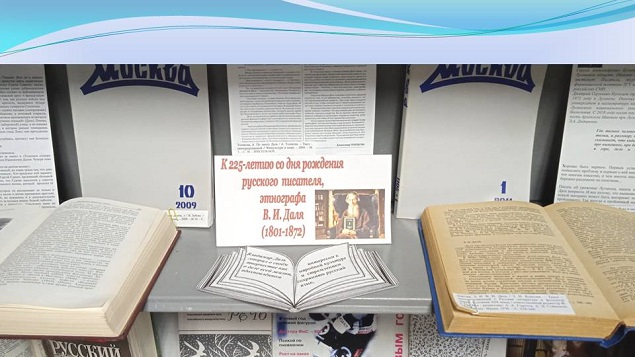 Так, сотрудниками отраслевого учебного отдела общественных и педагогических наук к памятной дате подготовлена журнально-книжная выставка «Великий дар Владимира Даля».