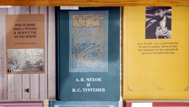 Особое место на выставке занимают сборники Скафтымовских чтений. Они предназначены филологам, журналистам, театроведам и всем интересующимся творчеством А. П. Чехова. История Скафтымовских чтений начинается в 2013 году, когда состоялось знакомство научного руководителя Института филологии и журналистики СГУ профессора Валерия Владимировича Прозорова и московского режиссёра и театрального критика Виктора Владимировича Гульченко, принявшего заведование Чеховским отделом, только что созданным в Бахрушинском музее. В октябре 2013 года были проведены Первые международные Скафтымовские чтения, а на следующий год в «Бахрушинской серии» издан первый сборник по материалам докладов. Серия «Скафтымовские чтения» издается Бахрушинским театральным музеем с 2014 года и неизменно связана с творческим наследием А. П. Чехова и памятью выдающегося саратовского исследователя А. П. Скафтымова, чьи научные труды актуальны уже девятое десятилетие.