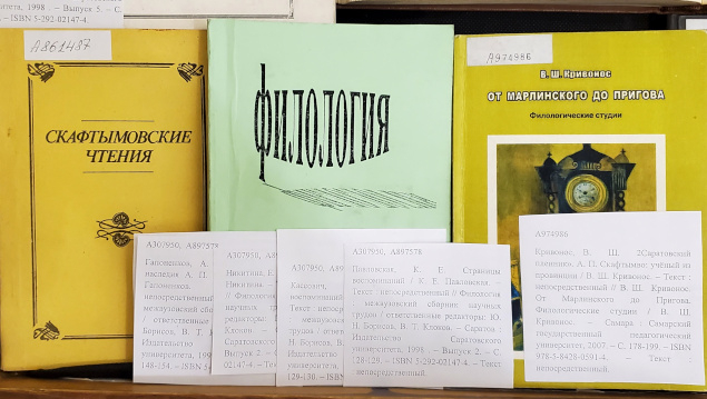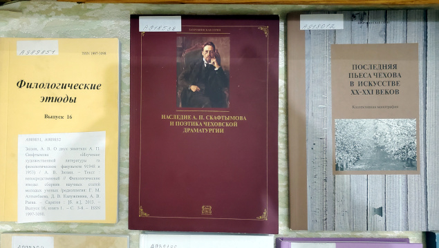На выставке представлены все десять выпусков скафтымовских чтений, в которых публикуются работы представителей саратовской филологической школы.