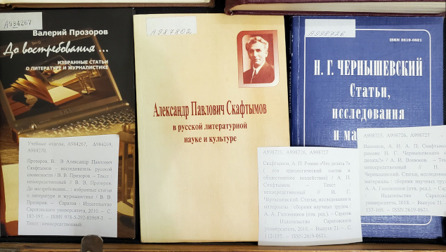 На выставке также представлена культовая книга «Методология и методика изучения русской литературы и фольклора: ученые-педагоги саратовской филологической школы» под редакцией профессора Е. П. Никитиной, рассказывающая о работе кафедры русской литературы Саратовского университета с момента её основания. Одна из глав посвящена профессору А. П. Скафтымову.