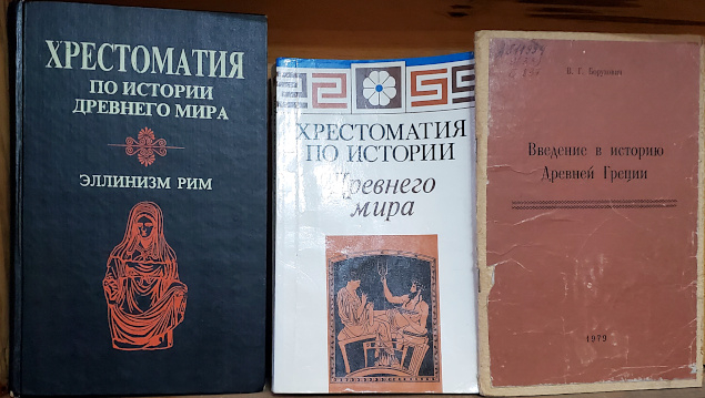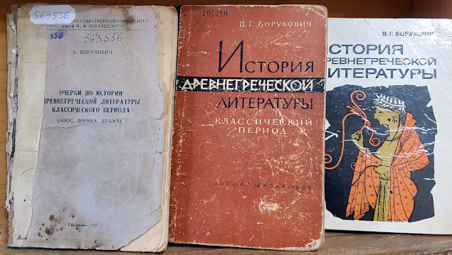 Будучи не только выдающимся учёным, но и замечательным преподавателем, Владимир Григорьевич создал один из лучших отечественных учебников по истории древнегреческой литературы, его издания 1957 г. и 1982 г. также представлены на выставке. Для студентов-историков под редакцией В. Г. Боруховича составлены сборники документов – «Хрестоматии по истории Древнего мира» и методические пособия.