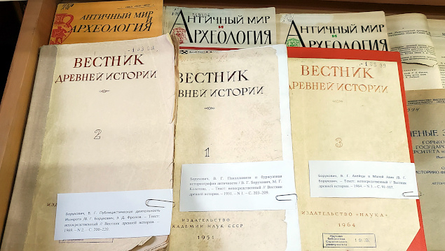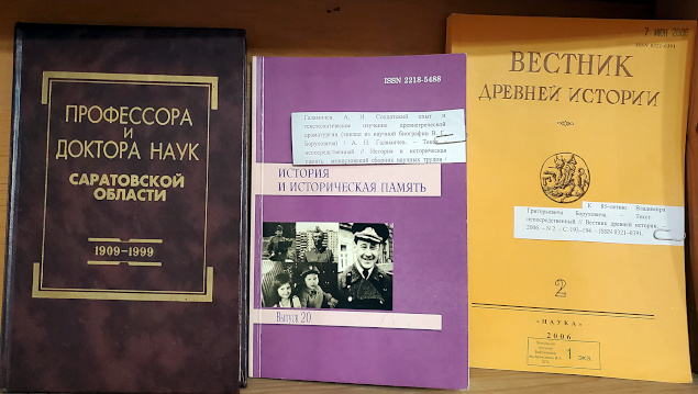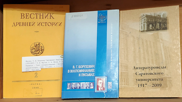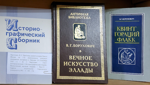 Открыта книжная выставка, приуроченная к 105-летию со дня рождения Владимира Григорьевича Боруховича (1920–2007), доктора исторических наук, профессора СГУ, крупнейшего специалиста в области античной истории, литературы и искусства, переводчика античных авторов, на протяжении почти 30 лет возглавлявшего кафедру истории Древнего мира (1969–1991).