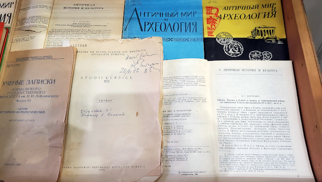 Из многочисленных работ Владимира Григорьевича на выставке представлены: его монографии «В мире античных свитков», «Квинт Гораций Флакк. Поэзия и время», «Вечное искусство Эллады»; переводы с комментариями «Мифологической библиотеки» Аполлодора и «Киропедии» Ксенофонта (обе книги изданы в серии «Литературные памятники»).