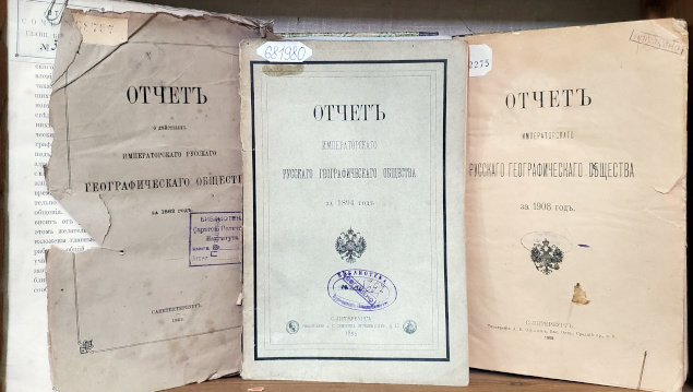С момента своего основания Русское географическое общество развернуло широкую издательскую и просветительскую деятельность: с 1846 г. по 1917 г. выходили «Записки Русского географического общества», с 1865 г. издаются «Известия Русского географического общества», с 1952 г. – «Географические сборники». Научный архив Общества является старейшим и единственным в нашей стране специализированным географическим архивом, в котором собраны уникальные документы российских путешественников, учёных, дипломатов.