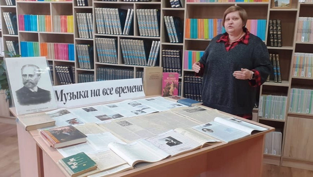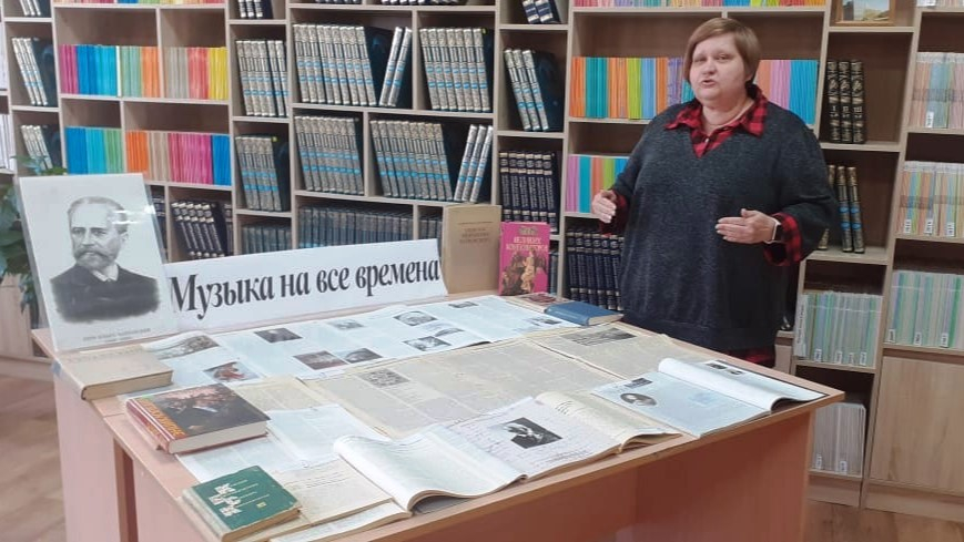 В продолжение разговора о П.И. Чайковском главный библиотекарь БИ СГУ Н.Н. Прусова познакомила первокурсников с содержанием тематической выставки «Музыка на все времена», состоящей из изданий, освещающих различных этапы жизни и творчества великого композитора.