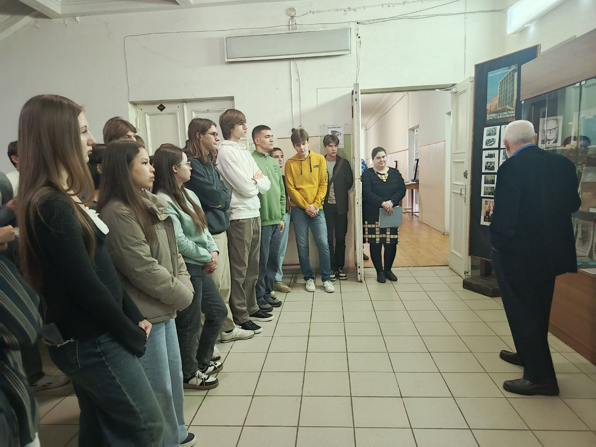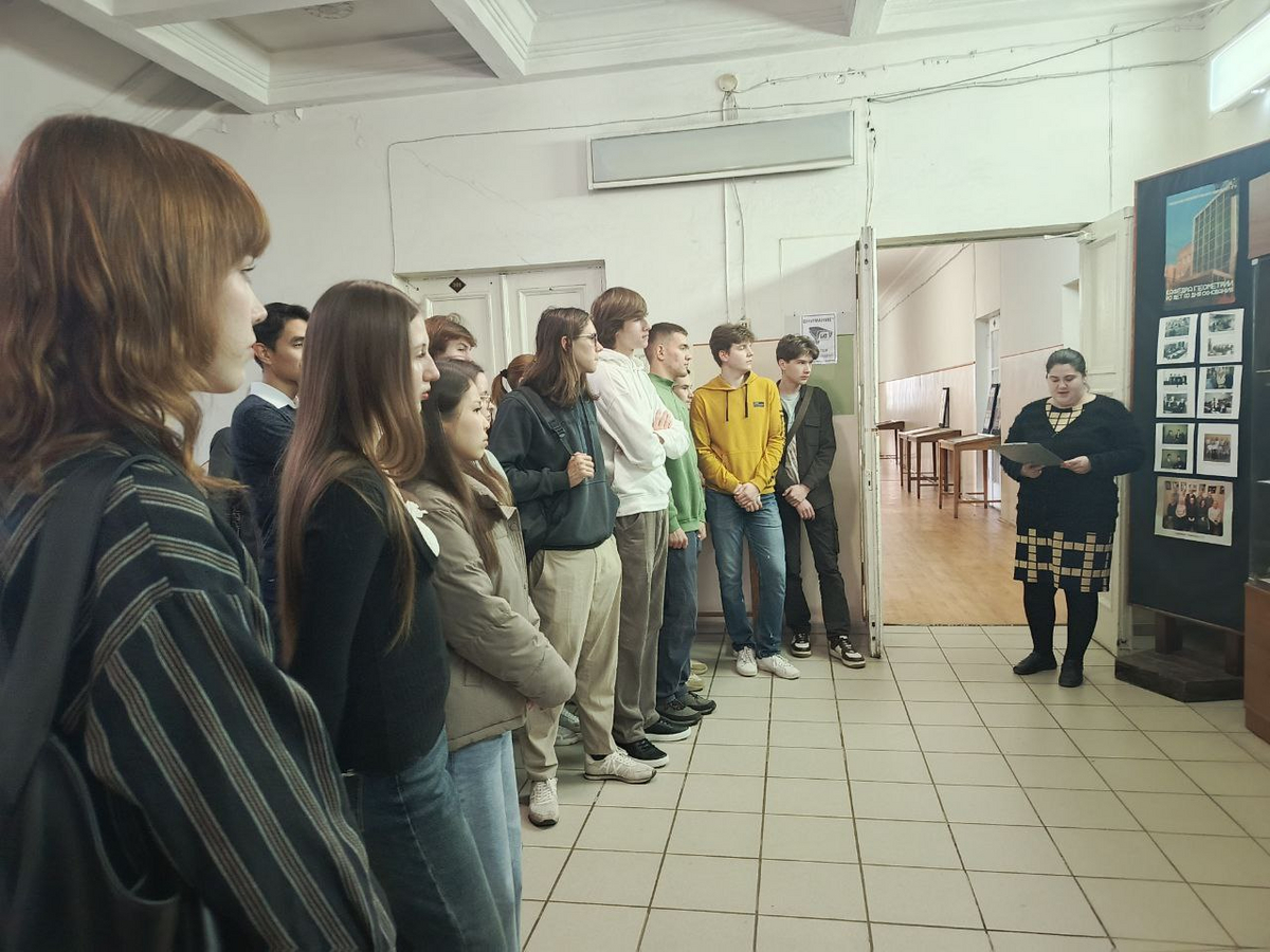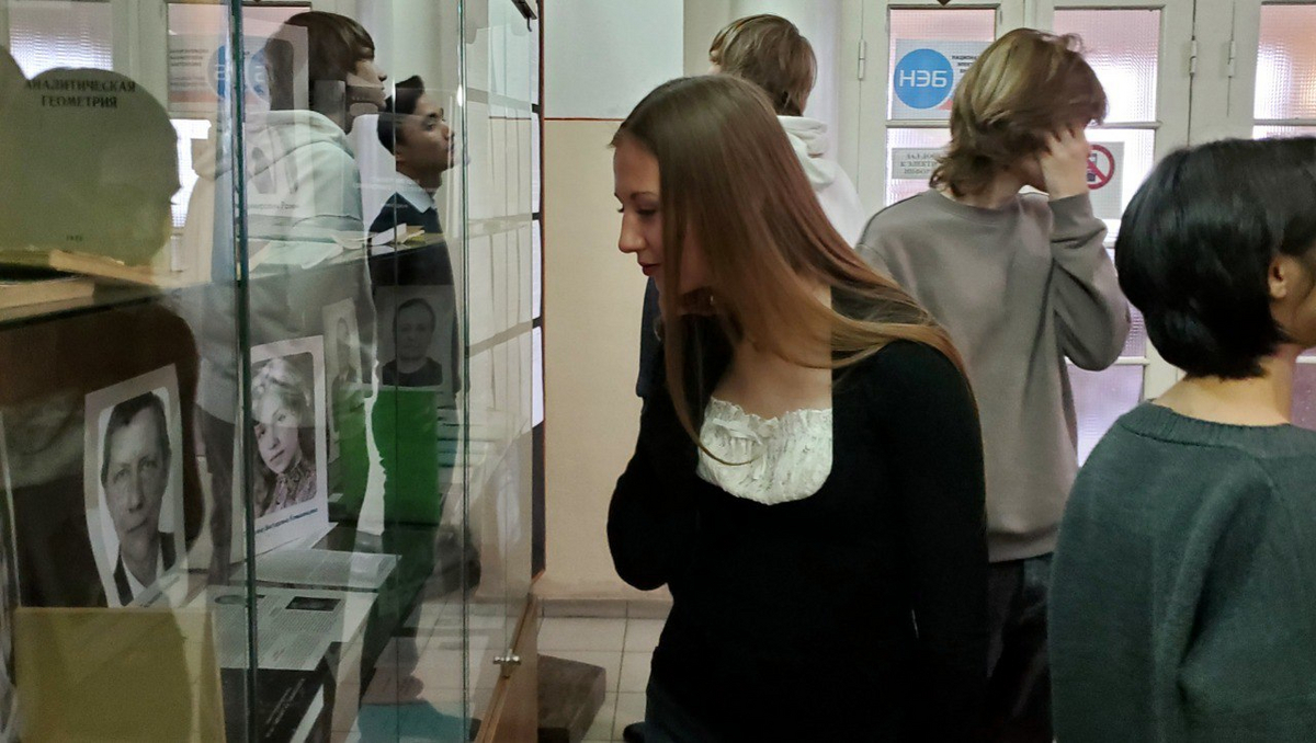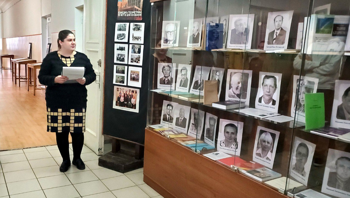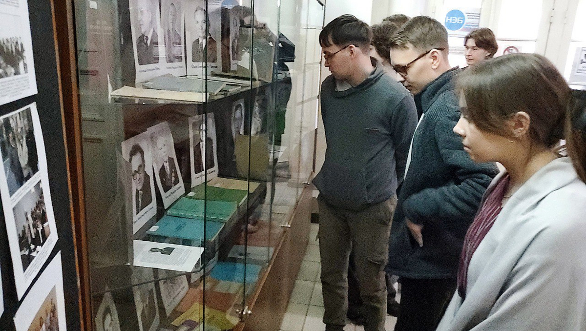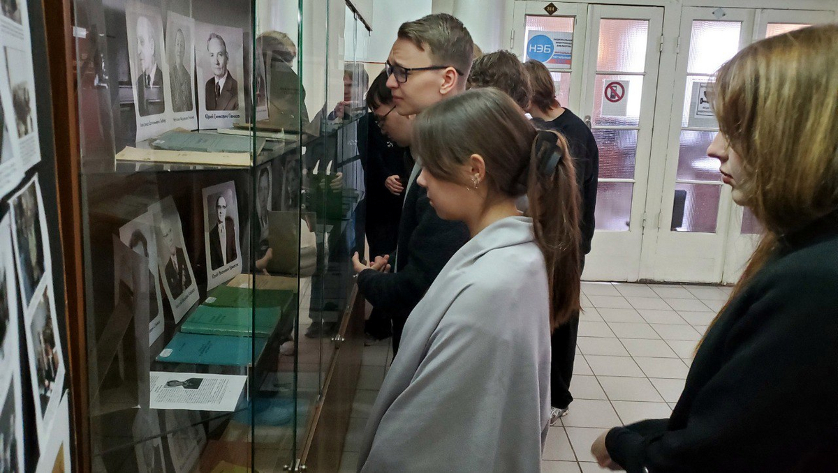 Первокурсники механико-математического факультета посетили выставку, посвящённую 90-летию кафедры геометрии. Погружение в историю этой кафедры для посетителей выставки началось с экскурсии, которую провела заведующая зональной научной библиотекой имени В.А. Артисевич - Анастасия Николаевна Хавкина. Она рассказала об истории образования кафедры, её развитии и трудах, выпущенных в честь юбилея, в частности, о коллективной монографии «Школа профессора Вагнера. Кафедра геометрии Саратовского университета» и юбилейной статье «Наследие Вагнера» в журнале «Известия Саратовского университета. Новая Серия: Математика. Механика. Информатика» под авторством Д.А. Бредихина, Н.Н. Макеева, В.Б. Поплавского.