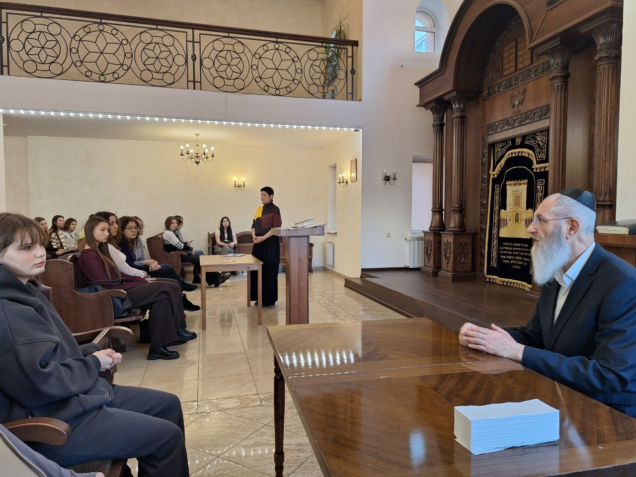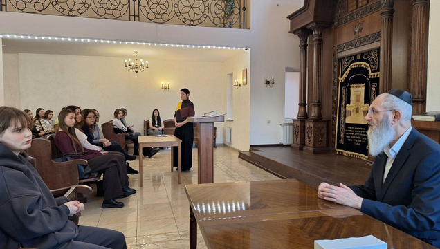 Студенты 1 курса факультета ГДРиИЯ (профиль: «История» и «Обществознание») в рамках курса «Основы российской государственности» посетили синагогу саратовской еврейской общины. В ходе мероприятия состоялась беседа с раввином Михаэлем Фруминым на тему: «Милосердие – от слов к делам. Социальные проекты традиционных конфессий». Также увлекательную экскурсию по синагоге для студентов провела известный общественный деятель Саратова, представитель еврейской общины города – Ирина Вейсман.
