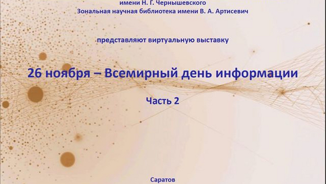 26 ноября ежегодно во всём мире отмечается Всемирный день информации (World Information Day). Праздник подчёркивает важную роль информации в современном обществе и технологиях, а также необходимость международного сотрудничества в этой сфере и направлен на формирование сознательного и избирательного отношения людей к потоку информации.