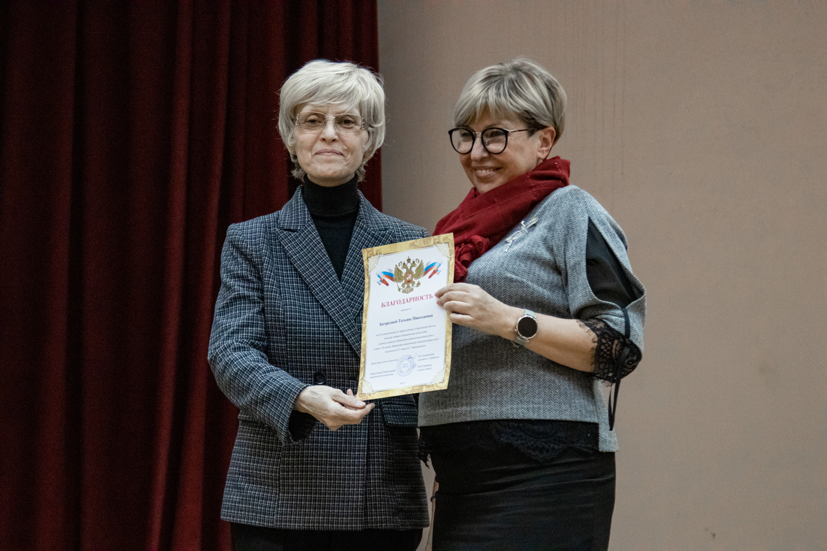 Людмила Николаевна награждала победителей конкурса совместно с заведующей кафедрой гуманитарных наук, философии и психологии СГМУ Е.А. Андрияновой. Всего вручили почётные грамоты 6 лучшим психологам Саратовского региона. В их числе оказалась доцент кафедры социальной психологии, заведующая лабораторией юридической психологии Н.М. Романова.
