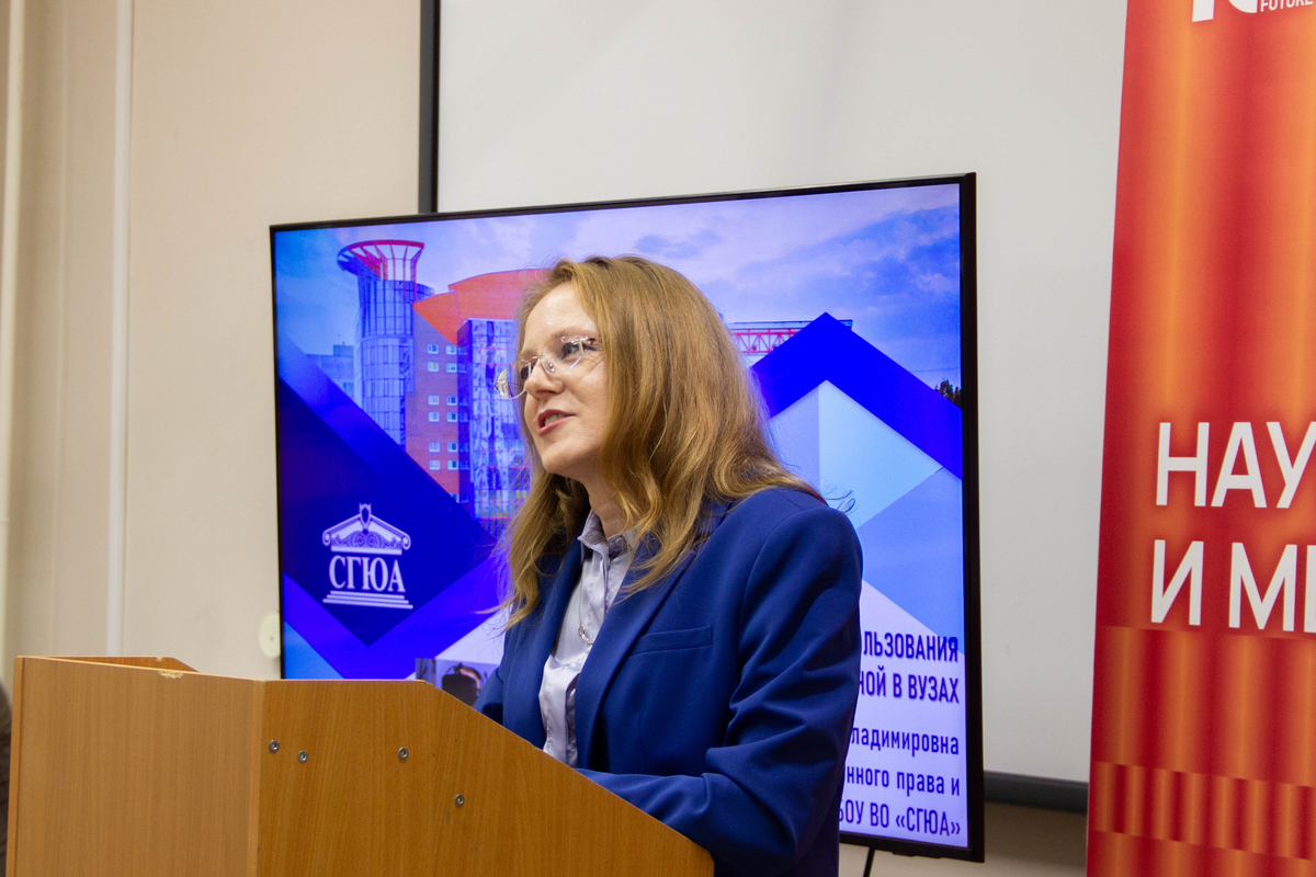 Куликова Светлана Анатольевна, д-р юрид. наук, профессор кафедры конституционного и муниципального права Саратовского национального исследовательского государственного университета имени Н.Г. Чернышевского представила доклад, в котором использование ИИ в образовательном процессе рассматривалось со стороны преподавателя и студента. Докладчик остановилась на рисках и положительных сторонах использования ИИ при проведении различных форм обучения.