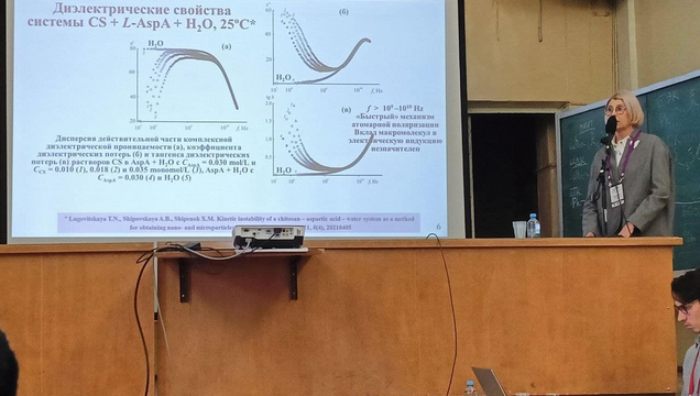 Заведующая кафедрой полимеров на базе ООО «АКРИПОЛ», профессор, д.х.н. Шиповская Анна Борисовна выступила с пленарной лекцией на тему: «Противоионная ассоциация как способ получения хиральных биологически активных наночастиц аспарагината хитозана». Лекция осветила вопросы самоорганизации в полимерных средах, основное внимание уделялось разработке полифункциональных биопрепаратов на основе полиэлектролитных наночастиц для высокотехнологичного растениеводства.