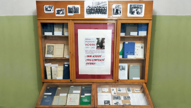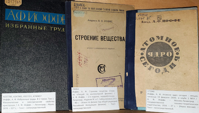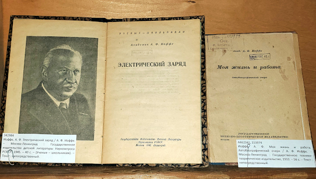 Также выставка знакомит читателей с учебником для вузов «Курс физики», подготовленным А. Ф. Иоффе в соавторстве с другими физиками