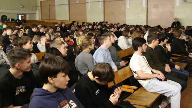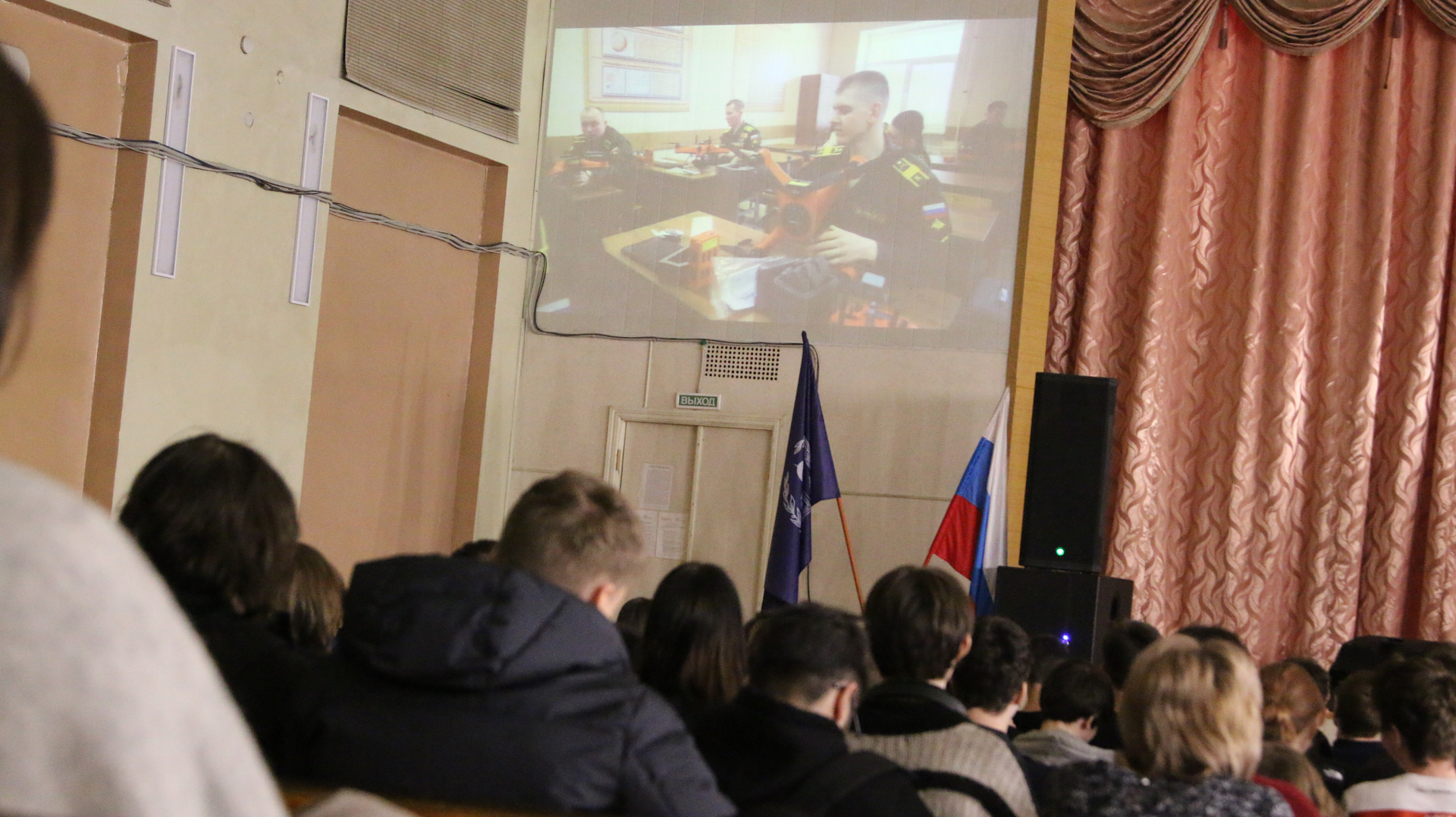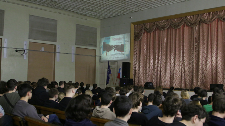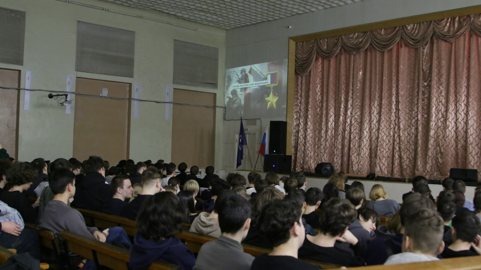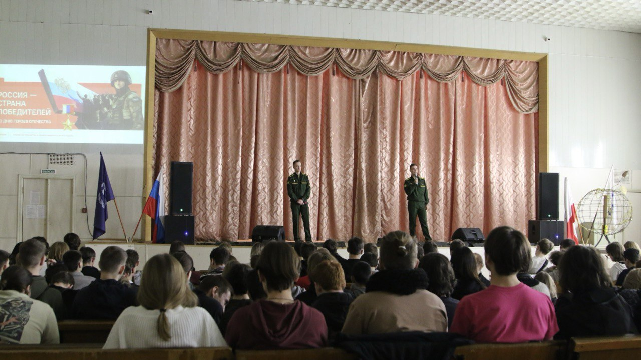 9 декабря 2025 года в Большом актовом зале Колледжа радиоэлектроники имени П.Н. Яблочкова прошел классный час для студентов 1-3 курсов из цикла мероприятий проекта «Разговоры о важном». Тема классного часа – «Россия — страна победителей. Ко Дню Героев Отечества».